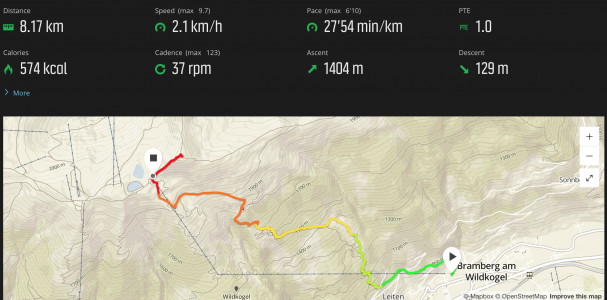 Nach ziemlich genau 3 Stunden erreichten wir nach 1400 Höhenmetern die Wildkogel Alm, was gleichzeitig die Bergstation der Smaragdbahn ist. Nach einer kurzen Pause musste ich mir natürlich noch den Gipfel holen, der nur noch knapp 200 Höhenmeter entfernt war. Da keiner mitkommen wollte, nahm ich ihn noch schnell alleine in Angriff.