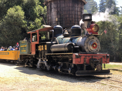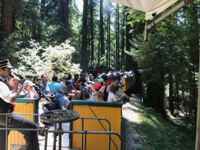 Beim weiteren Erkunden entdeckten wir das Stadtviertel „Japantown“. Alle Geschäfte waren auf diese Kultur ausgelegt und somit recht kitschig meiner Meinung nach. Deshalb blieb es bei einem kurzen Erkundungsbesuch. Die Weiterfahrt zum „Child Discovery Museum“ war für Mika eine willkommene Abwechslung, in dem es aus verschiedenen Kulturen und Bereichen etliches zu entdecken und zum Anfassen gab. Ein besonderes Highlight für Mika war danach die Fahrt mit einer Steam Tram im Roaring Camp, einer nachgebauten kleinen Westernstadt mit Pferden, Sheriffs und Live-Countrymusik. Die Lok beförderte uns mit viel Dampf (aber wenig Geschwindigkeit) rund 5 Kilometer durch den Wald, vorbei an riesigen Mammutbäumen und einigen alten Holzbrücken, an denen der ambitionierte Schaffner ungefähr 74 mal dazu aufforderte unbedingt sitzen zu bleiben. Technisches Highlight war die Tatsache, dass die Lok mit 9,5% eine der steilsten Strecken der Welt zurücklegt. Bei der Abfahrt mussten wir übrigens ein paar Mal kurz anhalten damit der Schaffner schauen konnte, ob noch alle Bremsklötze an Ort und Stelle sind (aha?!).
