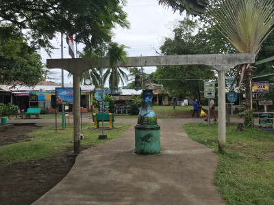 Nach etwa einer Stunde Überfahrt erreichten wir das 500 Einwohnerdorf, was fast wie eine eigene Welt wirkte. Die tiefgrüne Pflanzenwelt verzauberte mich von Beginn an. Nach dem Anlegen begrüßte uns ein Hotelmitarbeiter der uns durch das kleine Dorf zu unserer preiswerten Unterkunft “Cabina Icaco” am Meer führte, welche für die nächste zwei Nächte unser Domizil sein sollte. Übrigens gibt es in diesem Dorf keine Autos oder andere motorisierten Fahrzeuge. Lediglich Fahrräder werden von den Einheimischen genutzt. Die Hauptwege sind schmale hohe Betonstreifen mit einem eigenen Charme. Zwischendrin befinden sich lediglich Trampelpfade. Die meisten Hütten der Bewohner sind einfache Steinhäuser mit einem Wellblechdach. Unser Hotel besteht ebenso aus kleinen Zimmern, die jedoch völlig ausreichend sind, da ja die Erkundung der Insel, wie ich es immer nannte, im Fokus stand. Nach einer kurzen Orientierung machten wir uns auf den Weg zu Tortuguero Tours, wo wir für den nächsten Tag eine Canopy-Tour gebucht hatten. Die Inhaberin, Jessica, ist eine deutsche Auswanderin, die mittlerweile seit vier Jahren in Tortuguero wohnt und sich dort ihr kleines Reich aufgebaut hat. Mit ihr sind wir schnell für längere Zeit ins Gespräch gekommen und sie hat natürlich auch über die Schwierigkeiten in diesem Land gesprochen. Sei es zu einem die ärztliche Versorgung und auf der anderen Seite die hohen Lebenshaltungskosten für Einheimische im Land. Sie gab uns noch einige Restauranttipps und dann begaben wir uns auf Futtersuche. Wir schlenderten die gemütliche “Hauptstraße” entlang. Diese besteht aus einer Reihe kleiner Shops, Cafés und Bars. Zum Abendbrot ist besonders das günstige einheimische Casado und Gallo Pinto zu empfehlen. Kurz übersetzt ist das Reis mit schwarzen Bohnen und wahlweise Hühnchen oder Fisch in verschiedenen Variationen. Sehr sehr lecker und auch noch gesund. Weiterhin entdeckten wir eine Kirche sowie eine Schule. Trotz des wachsenden Tourismus hat das Dorf sein eigenes Flair und nichts von seiner Ursprünglichkeit verloren.