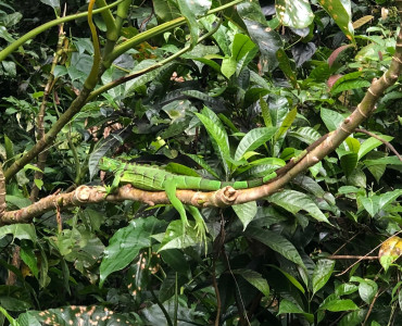 Am nächsten Morgen klingelte der Wecker weltreiseunmenschlich um 5:00 Uhr, da wir 5:45 Uhr mit dem Tourguide Francisco zu unserem Ausflug verabredet waren. Da in der aktuellen Regenzeit generell nicht sehr viel los ist, bekamen wir sozusagen eine Privattour. Nicht unbedingt das Schlechteste. Zum munter werden gab es einen Kaffee und danach liefen wir zum Eingang des Nationalparks (Eintritt kostet hier stolze 15 Dollar pro Person/Tag). Wir stiegen in unser Kanu mit Elektromotor ein. Bei einer dreistündigen Tour durch die Kanäle bestaunten wir die Pflanzen- und Tierwelt, teilweise mit einem Fernglas zur genauen Beobachtung für die schwachen Augen. 😉 Nach einer kurzen Siesta in der hoteleigenen Hängematte nutzten wir unsere Eintrittskarte für den Nationalpark aus und wanderten einen Trail den Dschungel entlang. Da es am Vortag stark geregnet hatte, liefen wir mit unseren Turnschuhen direkt los liefen wir – nachdem wir bereits ein bisschen gelaufen waren – wieder zurück und liehen uns am Eingang ein paar Gummistiefel, um heil durch die Matschpfützen zu gelangen beziehungsweise zu springen.