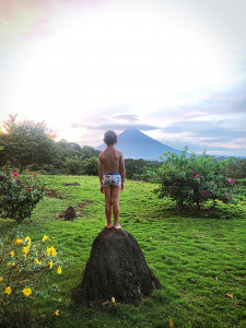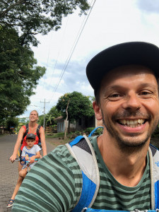 Wir folgten einer ganzen Weile der Panamericana zurück in Richtung Costa Rica und erreichten nach 2 Stunden das Surferdörfchen San Juan del Sur. Unsere Unterkunft lag nochmal 20 Minuten entfernt über Stock und Stein in der Nähe des Strandes Madera, wobei die letzten 300 Meter aufgrund des unwegsamen und steilen Geländes zu Fuß zurückgelegt werden mussten. Die holländischen Eigentümer der 4 Appartements “Oleadas Maderas” sind seit 15 Jahren in Nicaragua zu Hause und haben sich und ihren zwei Kindern ein eigenes Reich geschaffen. Somit hatte Mika am Nachmittag die Möglichkeit mit zwei Jungs zu toben und das Gelände zu erkunden. Wie schon in Costa Rica werden wir auch hier durch das Brüllaffengeschrei an den Sonnenuntergang und den Sonnenaufgang erinnert. Schon wieder ein “super” Service. 🙂