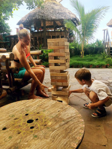 Am nächsten Tag ließen wir alle vier Gerade sein. Das heißt wir gingen schwimmen (nutzten dabei das kostenlose Stand Up Paddle), recherchierten einige Details zur Weiterreise und freundeten uns mit dem Hauspapagei Pong (er wohnt neben einer Tischtennisplatte) an. Besonders Meik hatte es ihm angetan. Das äußerte sich dahingehend, dass der Vogel ständig auf ihm rumkletterte und ankuschelte. Frage von Mika war darauf hin: „Papa, kaufen wir uns nach der Weltreise einen Pong?“ :-).