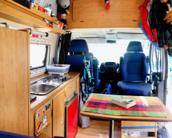 3 Wochen später war es dann soweit: Wir saßen im ICE und fuhren nach Heidelberg. Thomas holte uns mit dem Ducato vom Bahnhof ab. Ich nahm direkt hinter dem Lenkrad Platz und nutzte die Strecke zu seiner Wohnung als Probefahrt. Es fühlte sich schon mal alles super an für ein 17 Jahre altes Auto. Zu Hause angekommen führte uns Thomas alles vor. Klar, Dellen und Kratzer hier und da, aber wie der Ducato sich selbst als Wohnmobil definiert, war direkt zum Wohlfühlen. Und das war schließlich das Entscheidende. Glücklicherweise benutzte Thomas den Ducato als Zweitwagen und schon länger nicht mehr als Wohnmobil. Ein Auto was bewegt wird geht nicht so schnell kaputt. Zudem wird der Campingausbau ein Stück weit geschont. Win-win. Wir besprachen uns kurz und schritten zur kurzen Preisverhandlung. Am Ende einigten wir uns auf faire 8.900 €. Kurze Zeit später saßen wir zu zweit im Auto und bogen auf die Autobahn Richtung Erfurt ein.