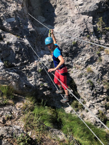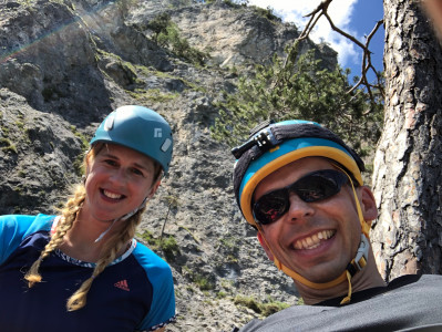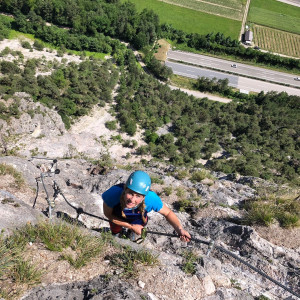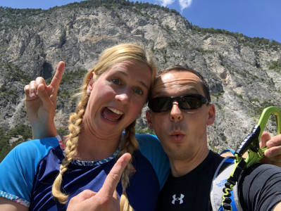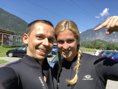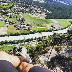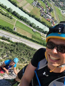 An diesem schönen Wochenende befanden wir uns im Rahmen des Geburtstagsgeschenkes von Jana in Tirol um dort unsere erste Rafting-Tour zu machen. Super schönes Erlebnis übrigens. Direkt im Anschluss entdeckten wir an der Ausstiegsstelle der Boote in Haiming eher zufällig die Geierwand: Eine südseitig ausgerichtete senkrechte Wand mit etwa 400 Höhenmetern. Auf etwa 2/3 des Weges befindet sich eine schöne Bank um Rast zu machen. Mitten in der Wand. Wirklich schön. Nicht weit entfernt überquert man ein Stück über ein Stahlseil. Für uns ein sehr schöner Ausklang des tollen Tages.